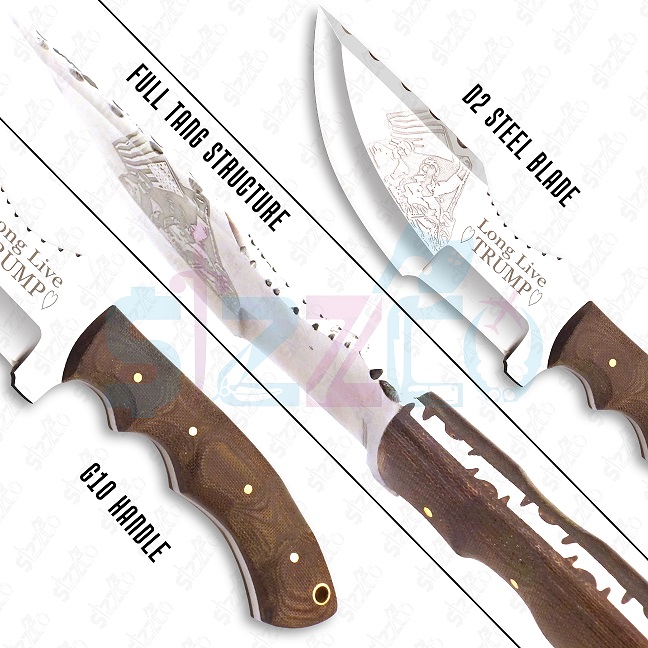 US FLAG Etching Custom Handmade 10″ D2 Steel Tracker Knife with G10 Handle